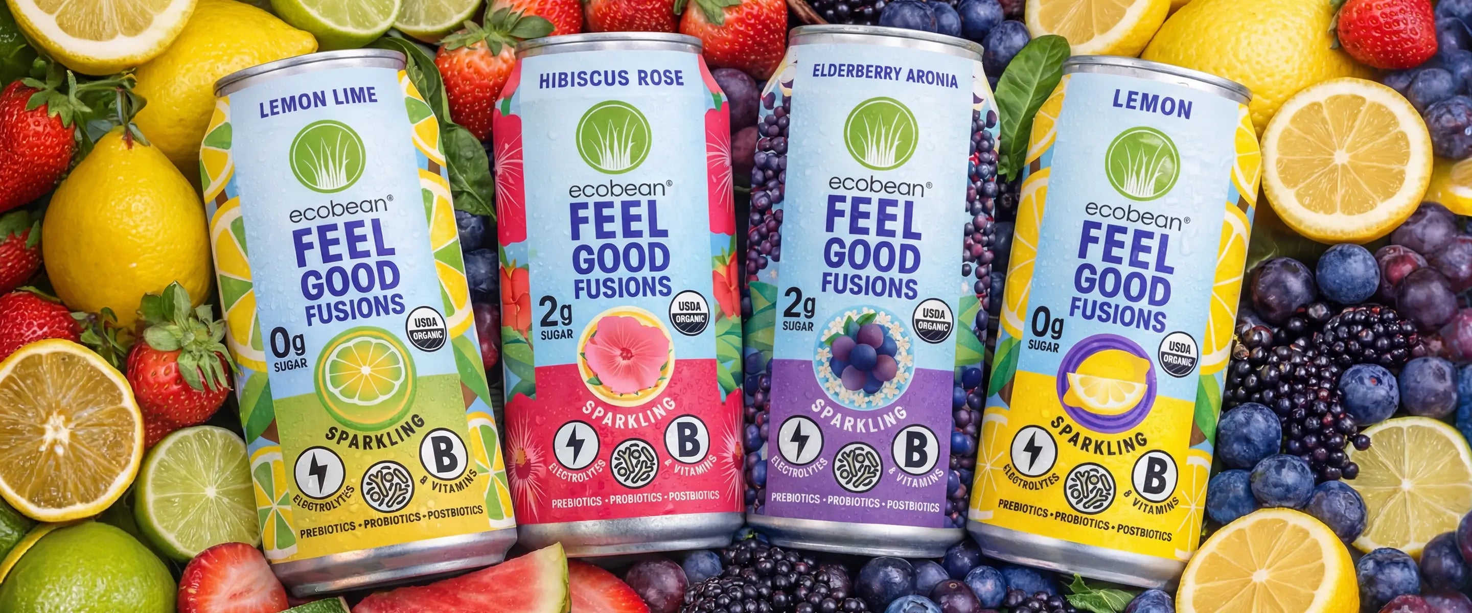 Low calorie, no sugar added functional drinks with electrolytes, trace minerals, B vitamins, and a full spectrum of pre-, pro-, and postbiotics.