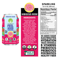 | FLAVOR PROFILE: Floral rose and tart hibiscus blend with soft cherry notes for a delicate, aromatic refreshment that soothes and uplifts. Naturally sweetened from organic fruit juice with no sugar added and low calories, it feels like a treat while staying light and clean. No sugar added. |
