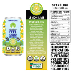 | INGREDIENTS: Carbonated filtered water, organic agave inulin (prebiotic fiber), organic lime juice concentrate, organic lemon juice concentrate, organic lime extract, organic lemon extract, organic lemon natural flavor, Peruvian pink salt, sea minerals (electrolytes), organic monk fruit extract, PoZibio heat-treated Lactobacillus Paracasei (probiotic/postbiotic), nicotinamide (vitamin B3), pyridoxine hydrochloride (vitamin B6), biotin (vitamin B7), cyanocobalamin (vitamin B12) |