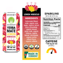 | INGREDIENTS: Carbonated filtered water, organic cane sugar, organic lemon juice concentrate, organic brewed yerba mate, organic hibiscus, organic brewed lemongrass, organic lemon natural flavor, organic caffeine (150mg) |